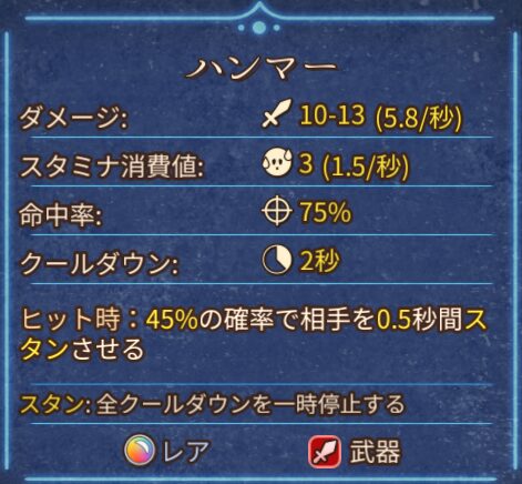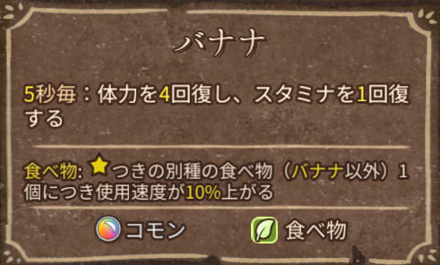 例)ハンマーとバナナ:ハンマーのスタミナ消費値の高さをバナナのスタミナ回復でサポートする