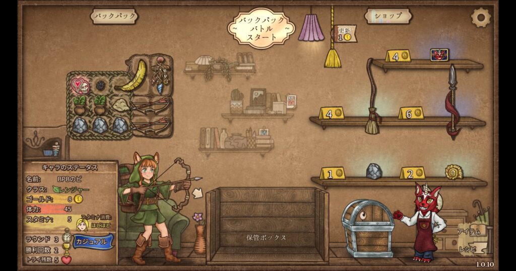 現時点で強いのであれば、ブタちゃん貯金箱やショップ会員カードなど、ショップで役に立つアイテムの価値が上がります。現在の強さが充分であれば、未来の強さが上がるような選択を積極的にしましょう。