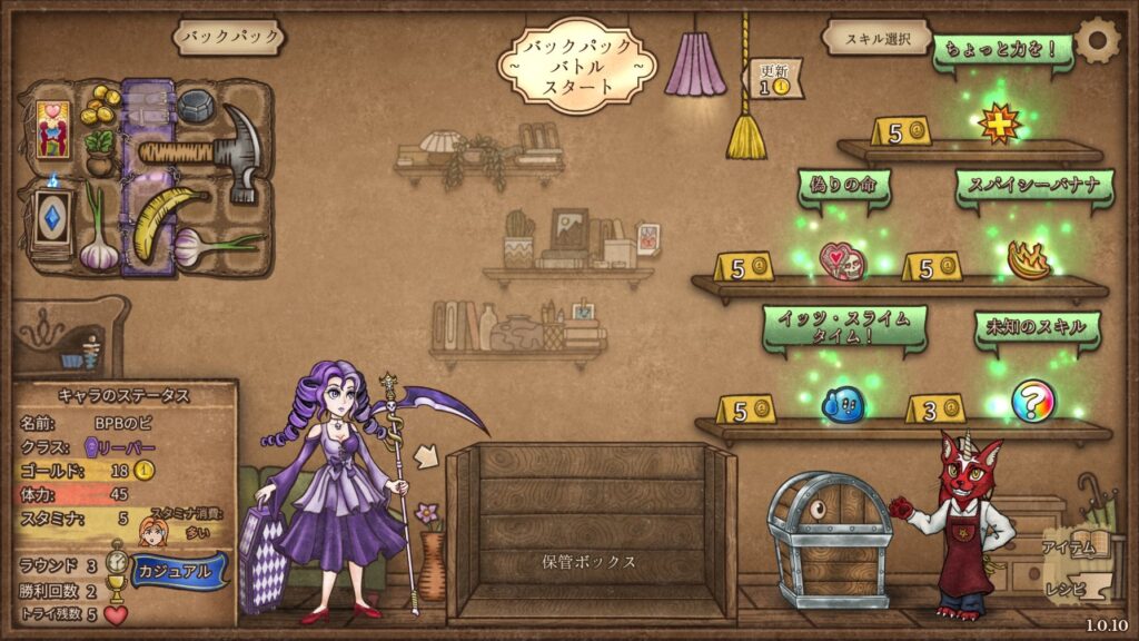 BPBはアイテムを買ってバックパックを強くしていくゲームなので、当然ながら