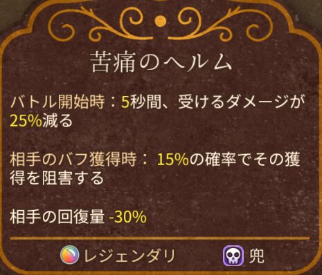 などの耐久力の増加につながるバフ獲得を阻害できる苦痛のヘルムのほうがより有効だと言えます。