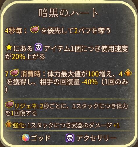 暗黒のハートをクラフトすると、相手の回復量を下げる効果に変わってしまうため、相手の対策に弱くなってしまいます。