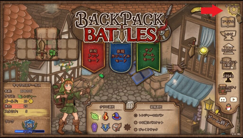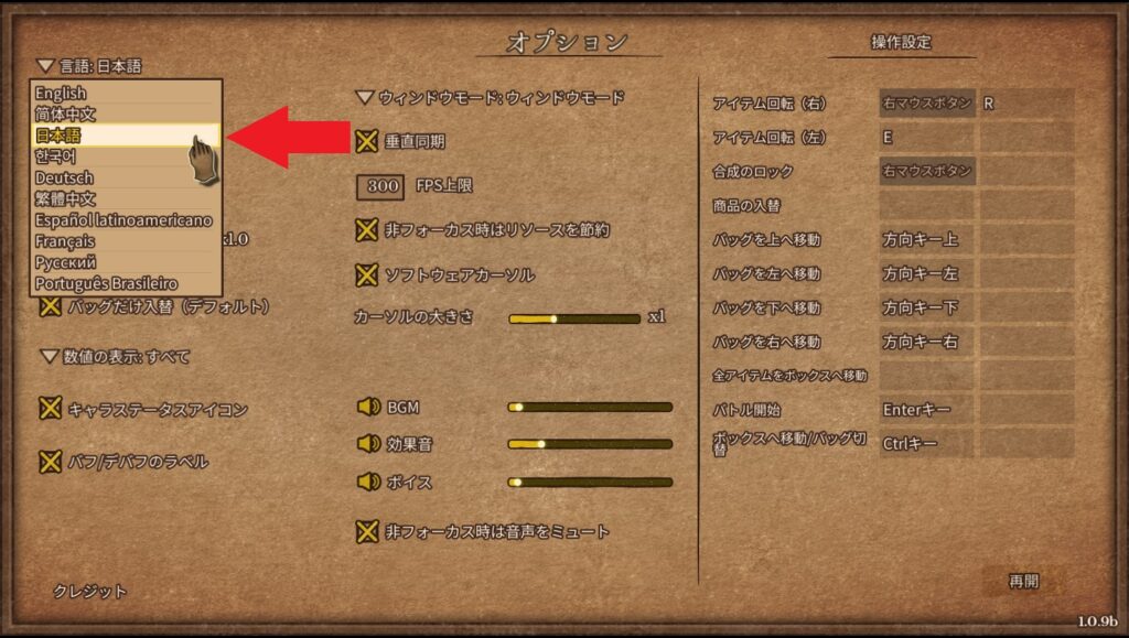 オプション画面の左上の言語タブで日本語を選べば切り替え完了です。