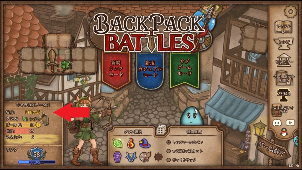 プレイヤーの名前を変更したい時は、画面左下の名前をクリックしてください。