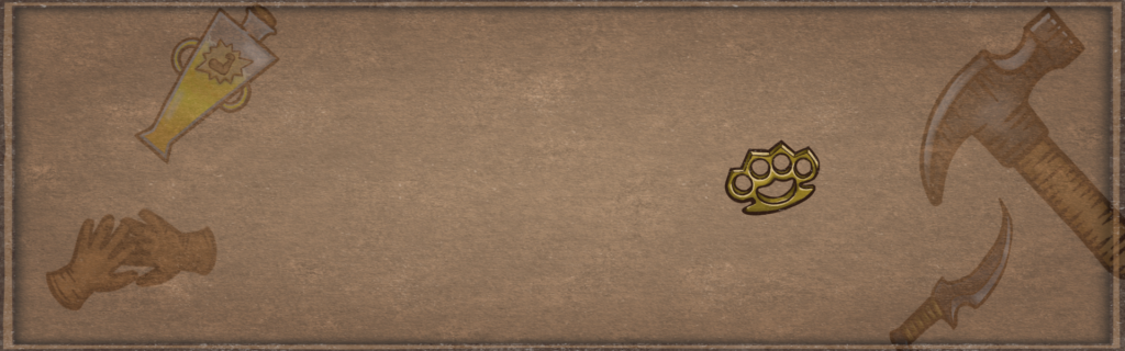 ハンマーをメイン武器として、複数のスタンによるダガーの追加攻撃で相手を倒し切る速攻型。10勝は充分にできるが、完走するにはややパワー不足。ブラスナックル以外のスタン効果があるサブ武器が欲しいところ。