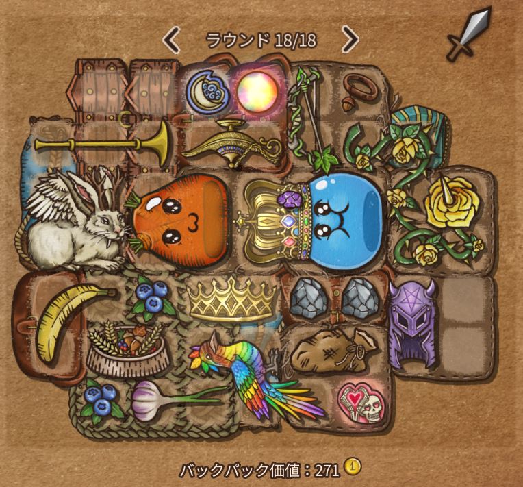 ある程度アイテムがそろわないと弱く、ラウンド8の時点でトライ残数が少ないと選択しにくい。