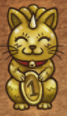| Maneki-neko (招き猫) ![]() | セールの発生率を4%増やす。 ★のついたアイテムの合計金額が20ゴールドより多いとき:20%の確率で、攻撃に対するクリティカル付与を防ぐ。 ★のついたアイテムの合計金額が40ゴールドより多いとき:ゴッドおよびユニークアイテムの発動速度が20%速くなる。 | 0.9.12d BETAで実装。 10ゴールドのレジェンダリ枠のアイテム。属性なし。★は6つ。 高額なアイテムで点灯させて効果の発動を狙う。合計金額は、招き猫にマウスオーバーすると猫の頭のあたりに表示される。合計金額が21ゴールドになると左手を上げ、41ゴールドになると両手を上げる。両手を上げると、両方の効果を発動する。 鎧などに設置した宝石の金額は合計金額に含まない。 バーサーカーの武装した子狼やパイロマンサーのドラゴンがゴッド枠かつ複数採用することが多いので、招き猫の恩恵が大きい。 |